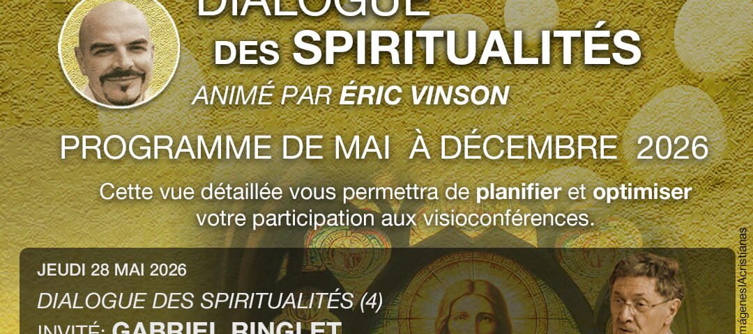 Les Dialogues des spiritualités, conduits par Éric Vinson, sont un programme de rencontres interreligieuses et spirituelles, conçu pour favoriser l’échange et la compréhension mutuelle. Une invitation à découvrir la richesse et la diversité des chemins de sens.